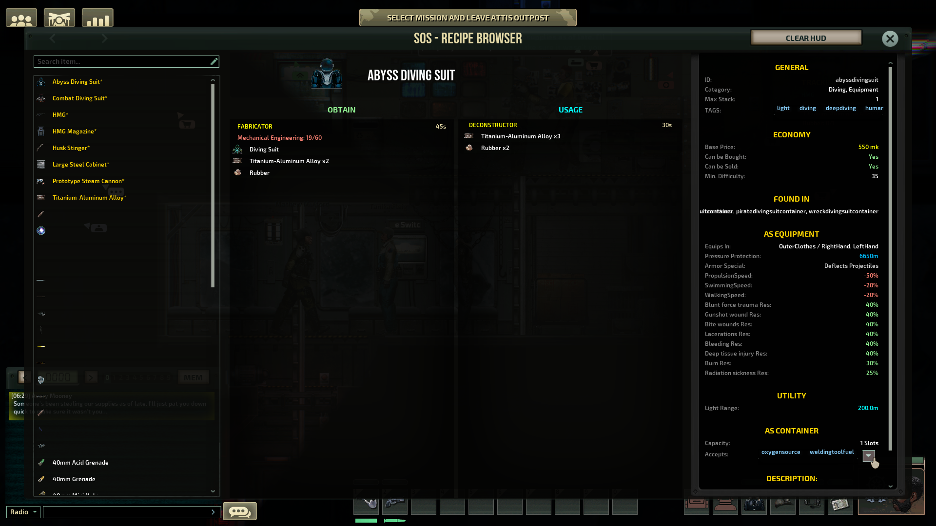 S.O.S. is a high-performance recipe browser and material tracking utility for Barotrauma. Designed to be the ultimate companion for both vanilla and heavily modded campaigns (like Neurotrauma or BaroCraftables), it provides a seamless, integrated interface to explore the complex economy of Europa.